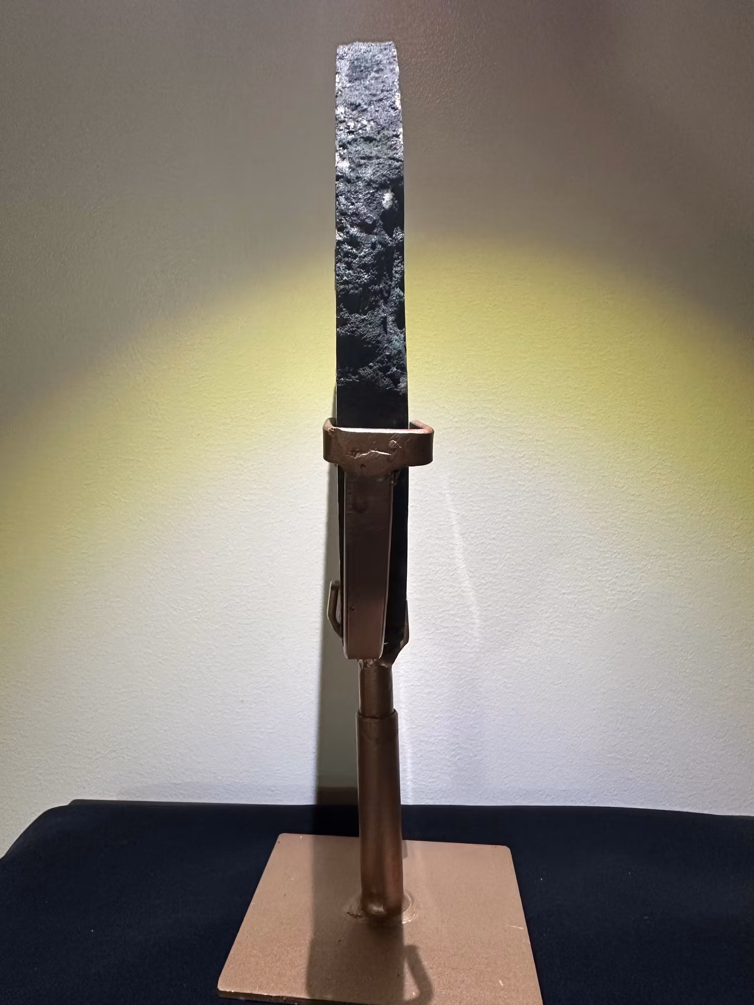 Naturlig Agat skiva på stand Stort och dekorativt mineralstycke i naturlig Agat portal med vacker Ametist som bildade sig i mitte av skivan, monterad på st
