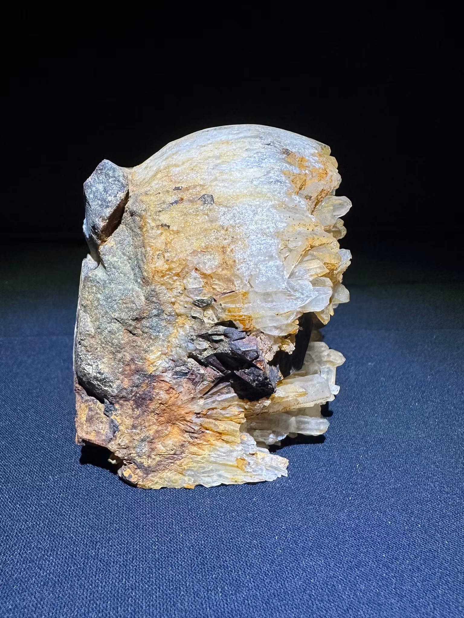 Naturlig Kvartskluster & Pyrit – Dödskallehantverk från BurmaUpptäck en skapelse där naturens kraft möter mänsklig skicklighet.Detta unika konstverk är hand