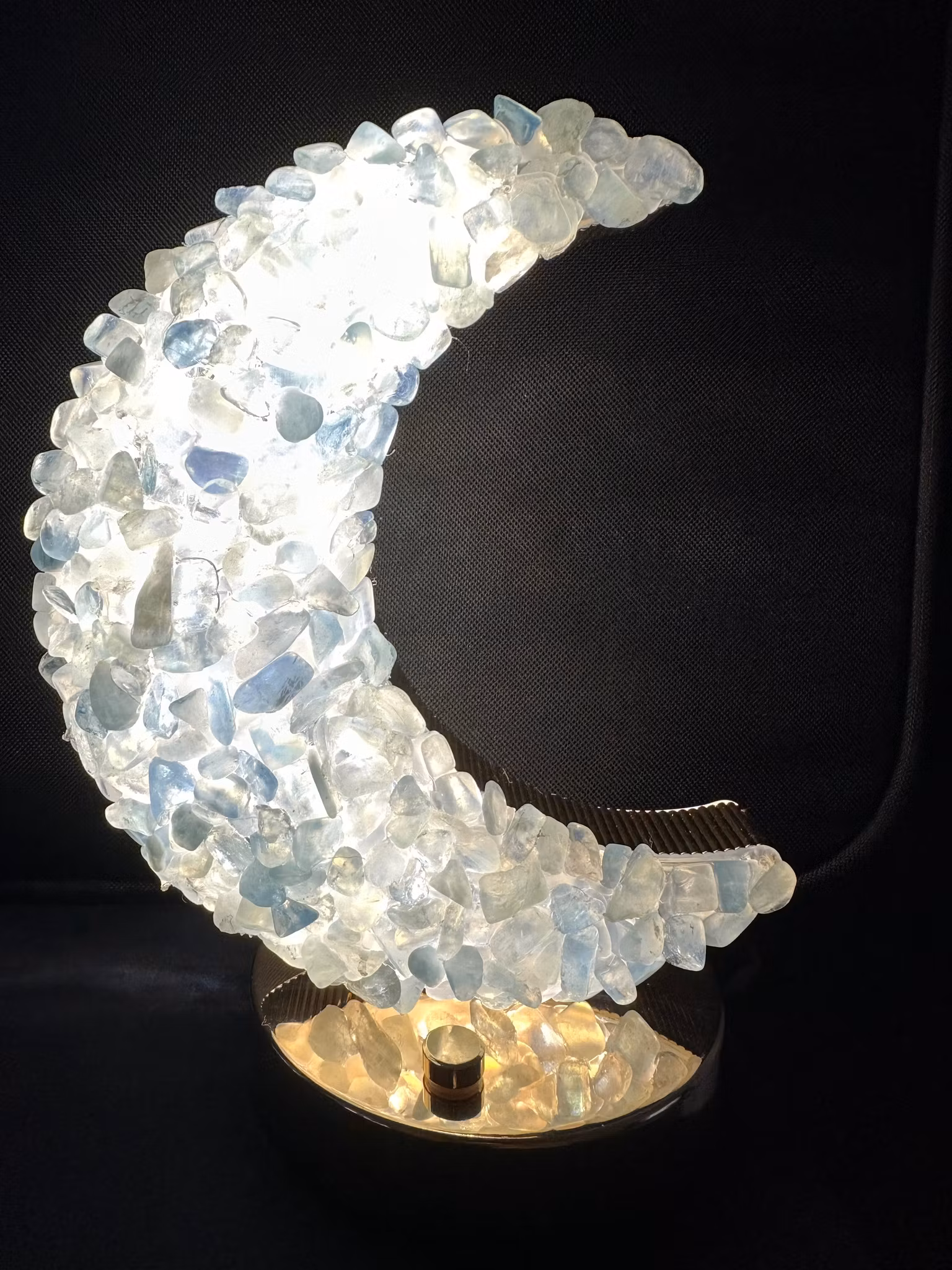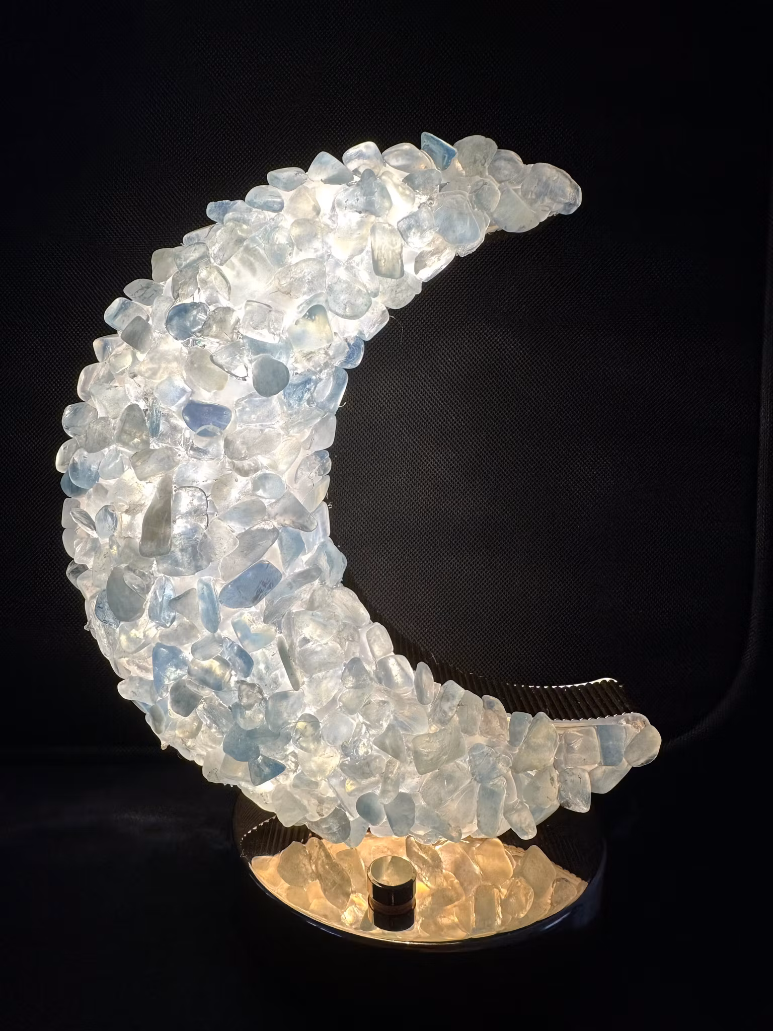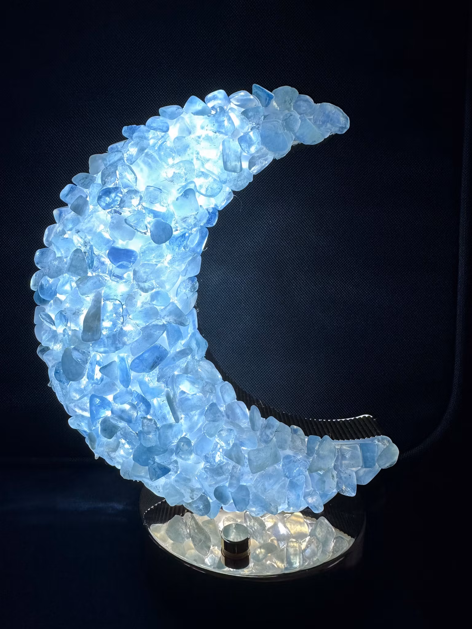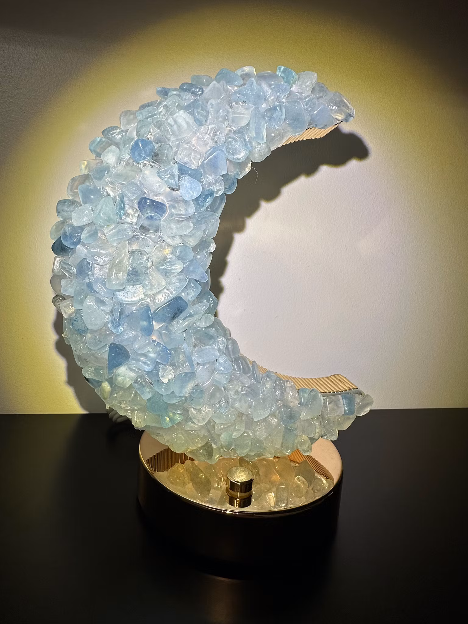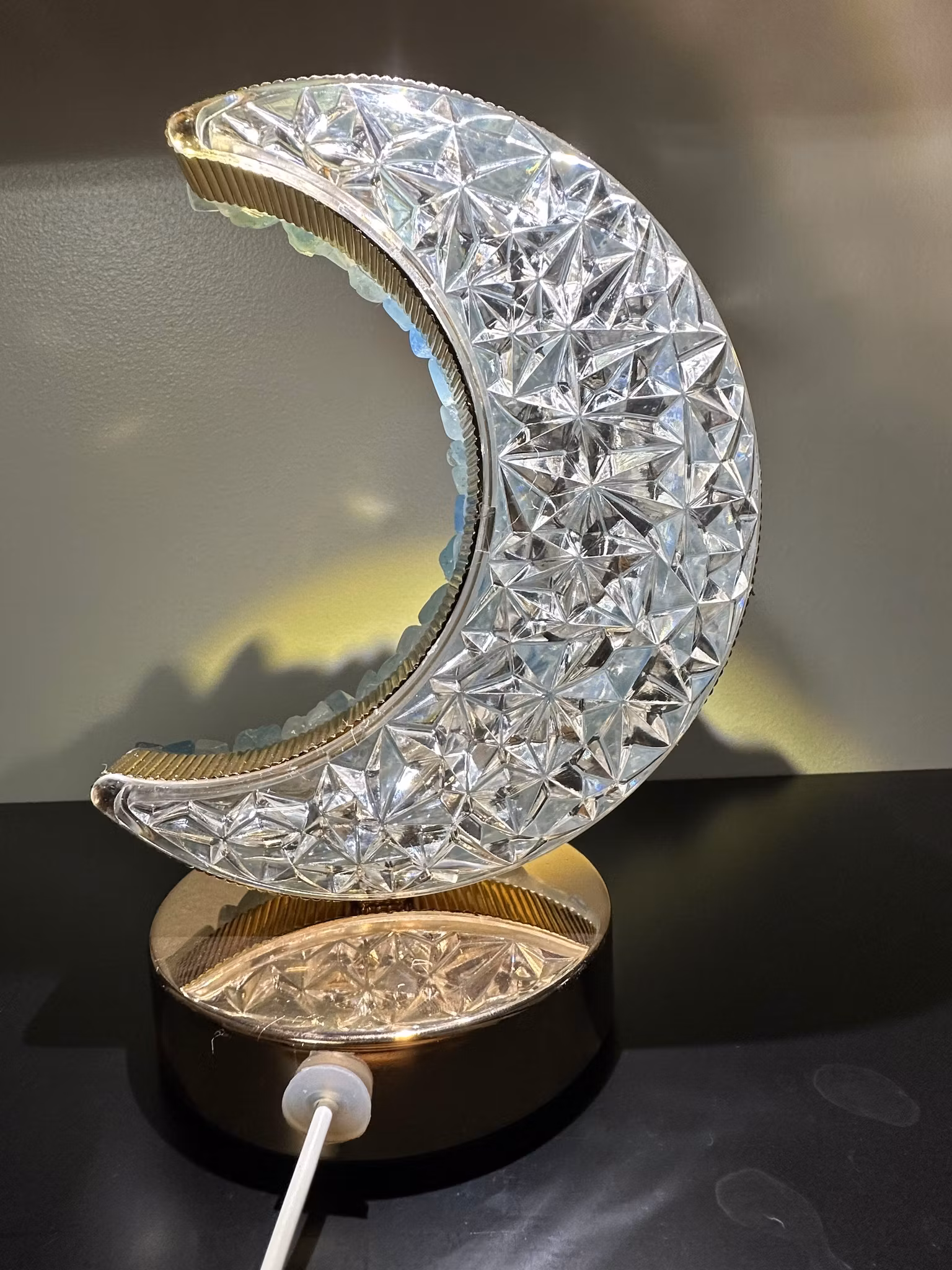 Elegant design möter mjukt skenMed sin naturliga Kyanit Kristall och 3D-design (måne) är en lampa för både vardag och speciella tillfällen – lika uppskattad som