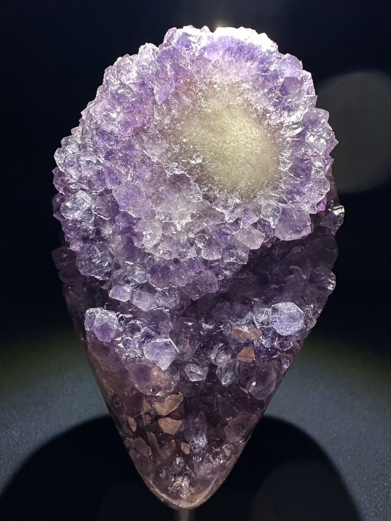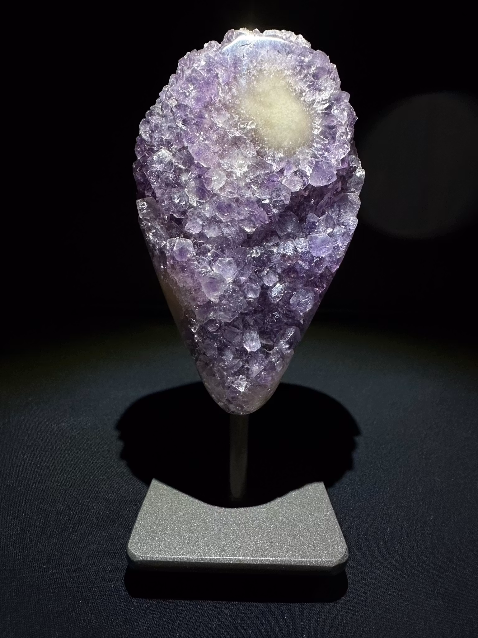 En otroligt vackert Ametist stalactite kluster på stativ och vackra spetsar som både är klara och gnistrar & jaspis Agat som bildade sig runt på kristallen.