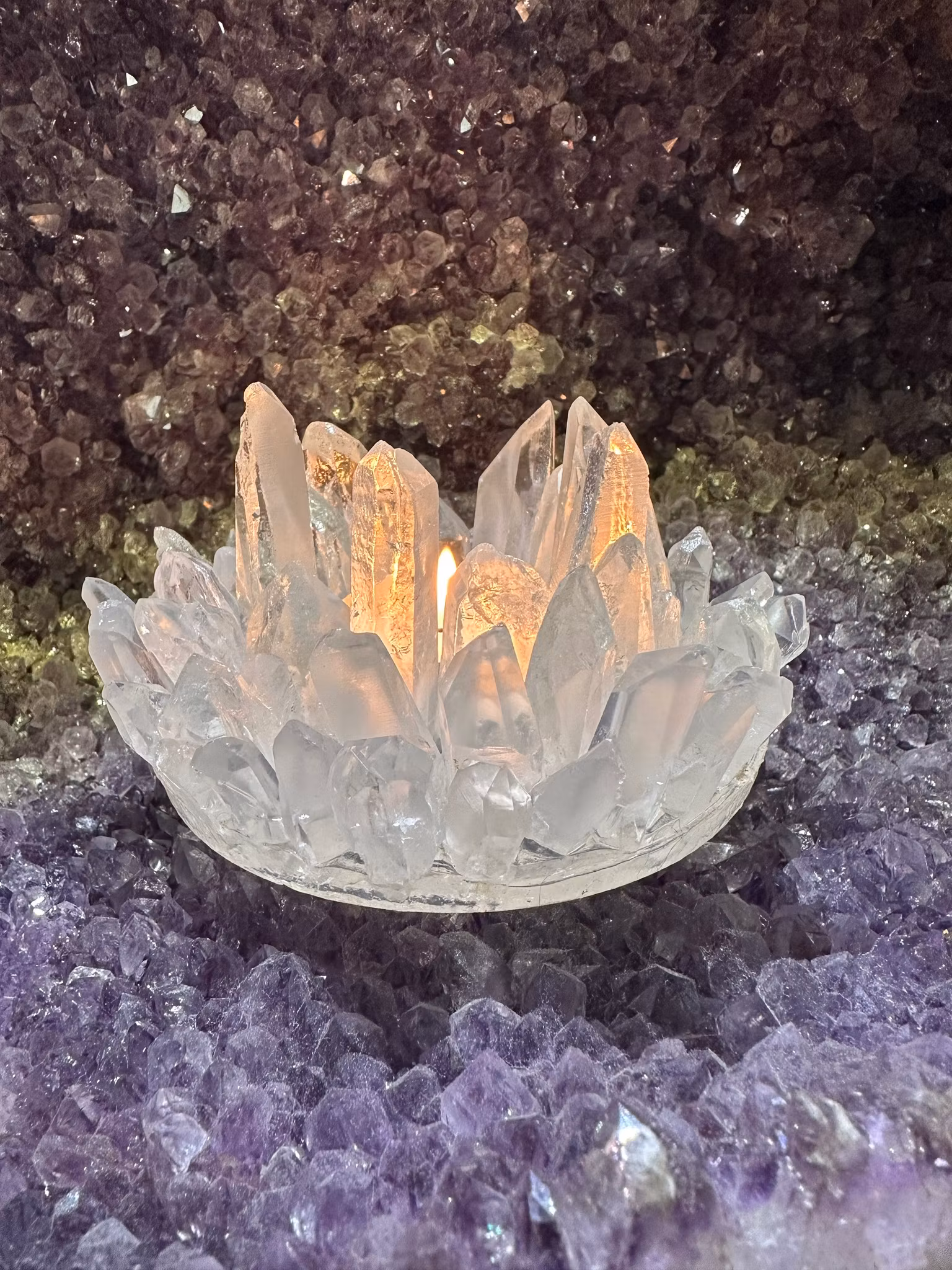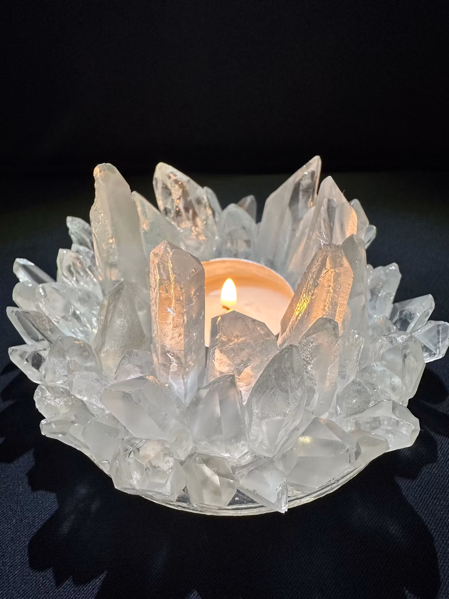 Handgjorda Naturlig Bergkristall ljuslykta med Spetsar đ
