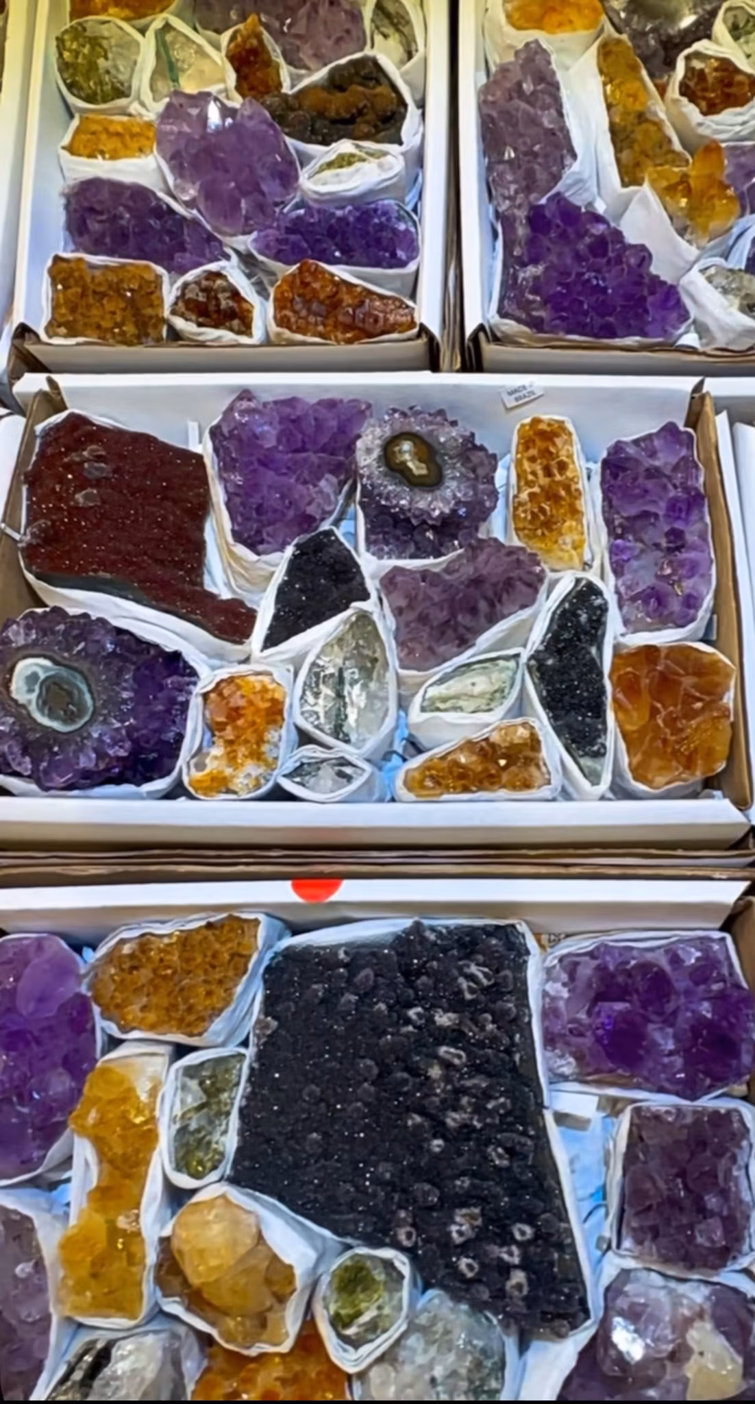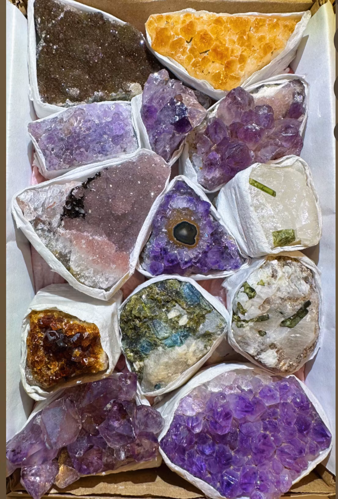 Varje låda väger cirka 900 gram och innehåller en noggrant utvald blandning av kristaller i sin naturliga, orörda form – perfekt för dekoration, meditation, healing eller som en meningsfull gåva.