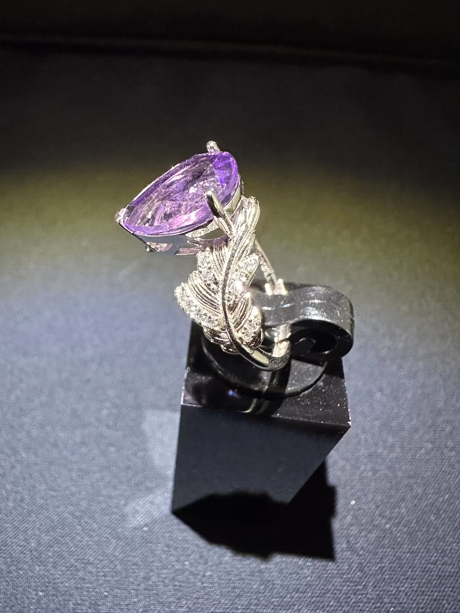 Elegant och vackert Ring i äkta 925 sterling silver, smyckad med en naturlig Ametist from Brasilien och gnistrande Zirkoner. Ringen är justerbar i storlek och passar alla, vilket gör den både praktisk och stilfull.