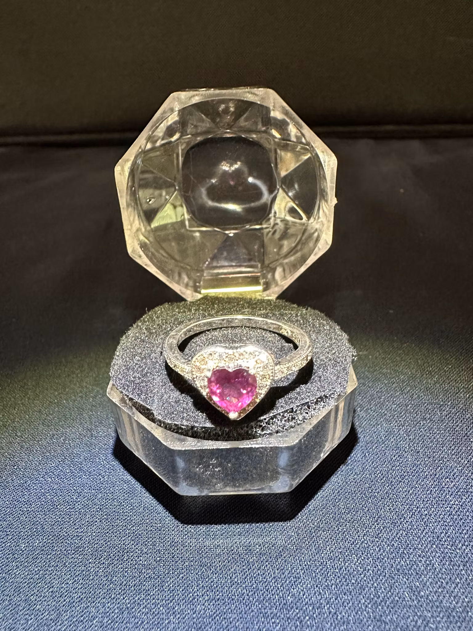 Vacker och romantisk Ros Turmalin Ring i äkta 925 sterling silver, Designad med en naturlig rosa turmalin i hjärtform, Ringen är dekorerad med gnistrande zirkon