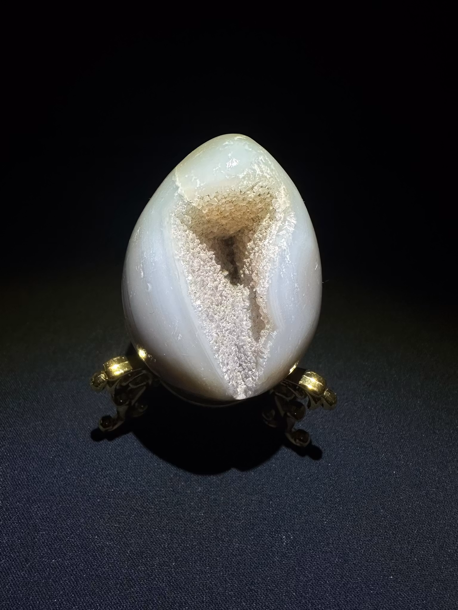 Upplev naturens magi med detta naturliga druzy polerade agatägg. Varje kristall är ett unikt konstverk format av jorden och slipat till en mjuk, glänsande yta s
