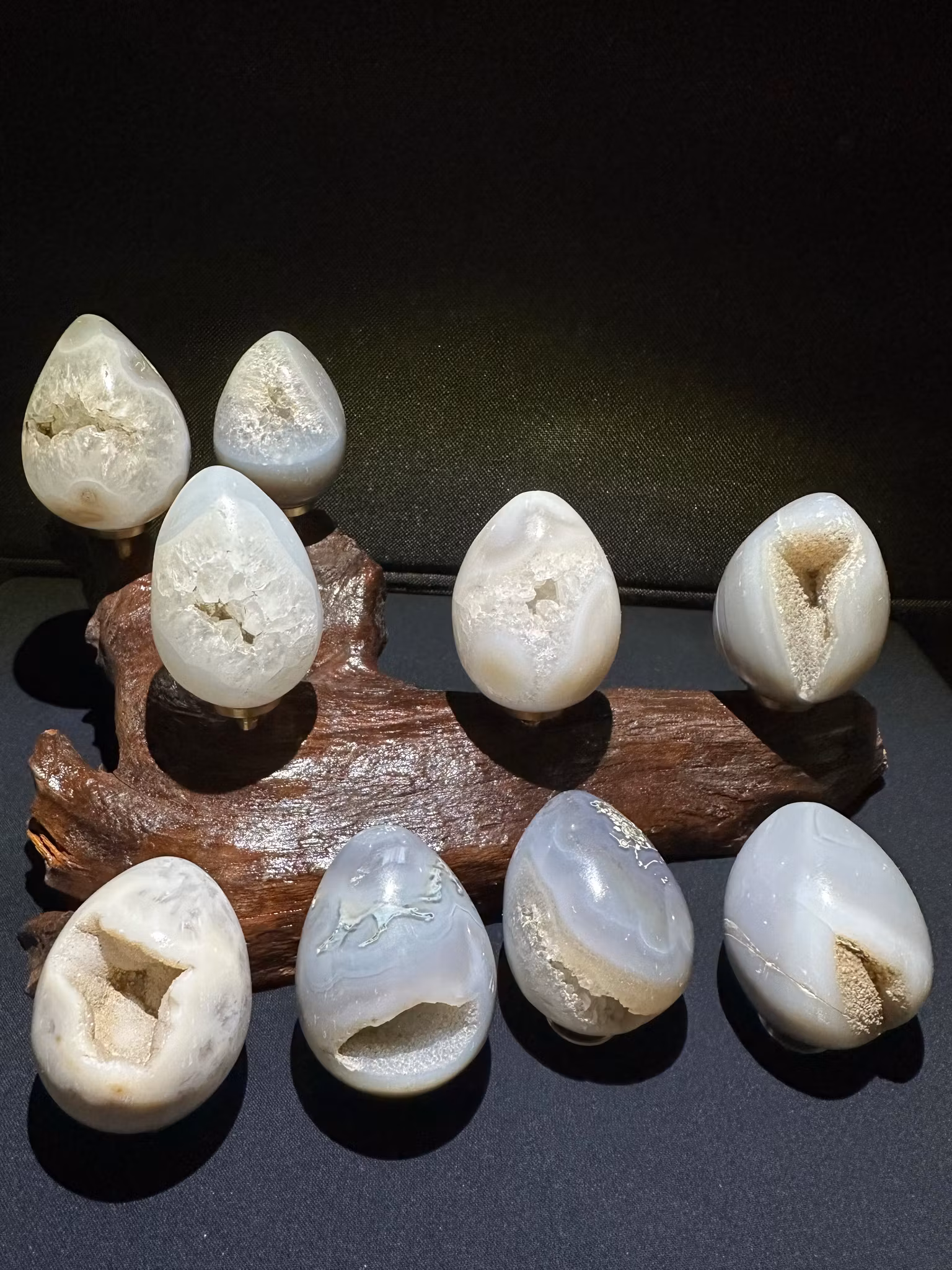 Varje druzy agatägg är helt unikt – ingen sten är den andra lik. Små variationer i form, färg och kristallstruktur är en del av dess naturliga skönhet och charm.
