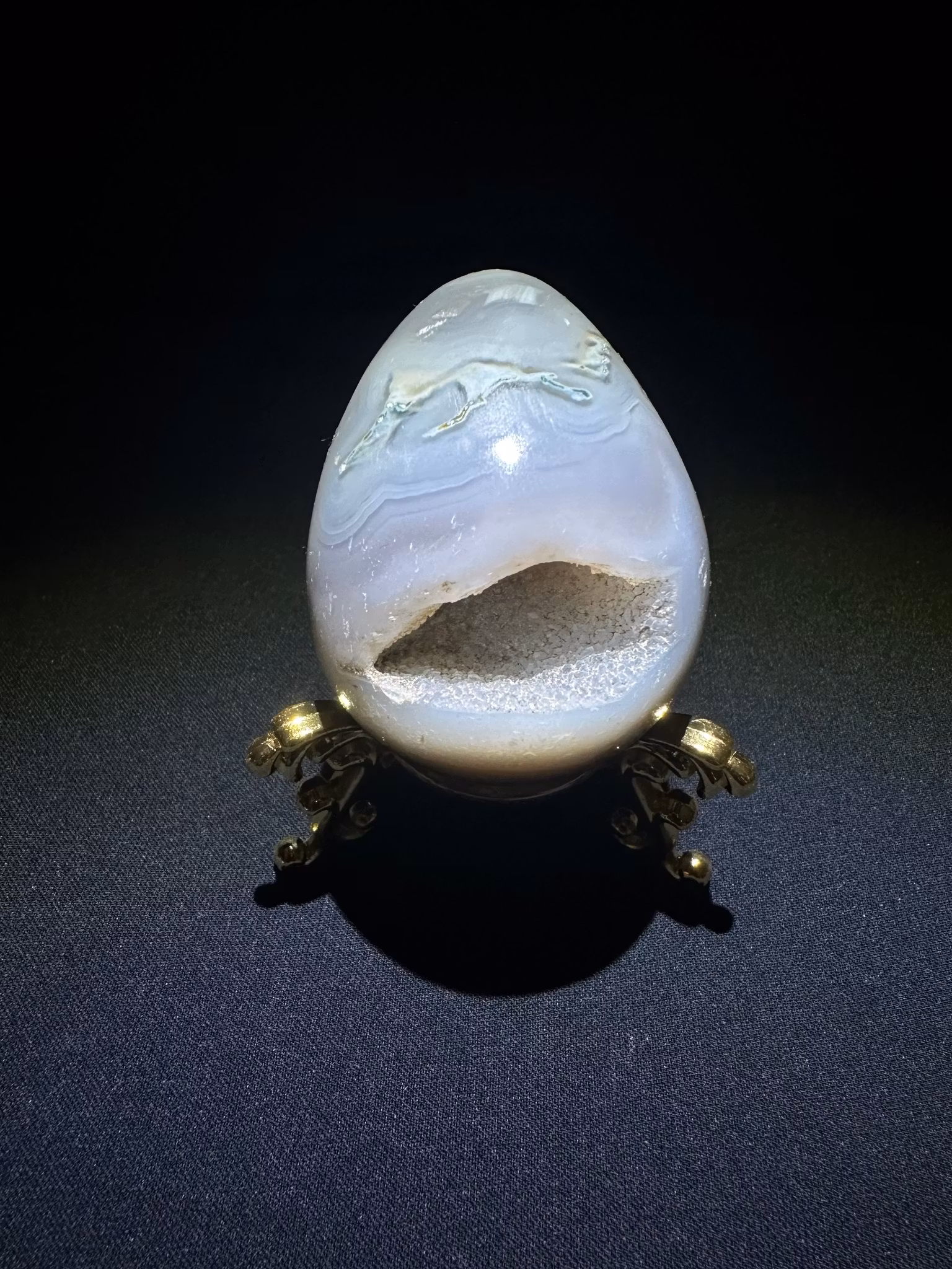 Upplev naturens magi med detta naturliga druzy polerade agatägg. Varje kristall är ett unikt konstverk format av jorden och slipat till en mjuk, glänsande yta som framhäver agatens naturliga färgskiftningar. Inuti ägget glittrar en vacker druzy-formation – ett lager av små kvartskristaller som skimrar i ljuset och sprider positiv energi.