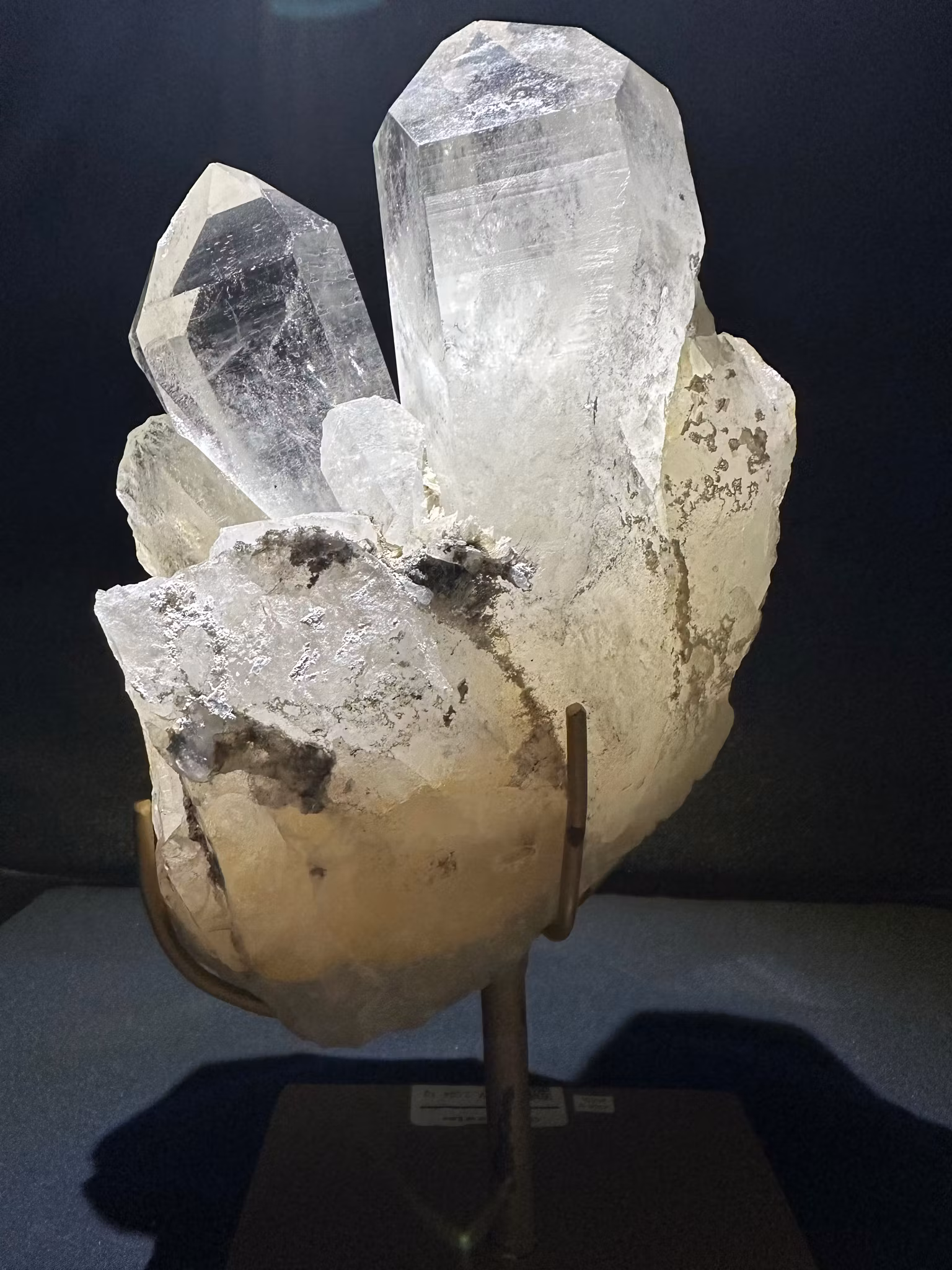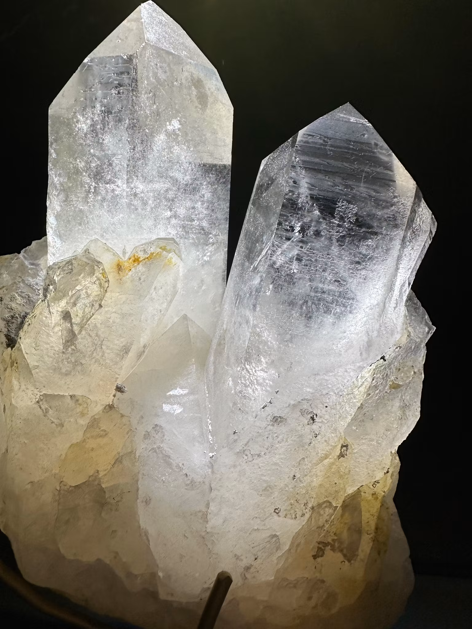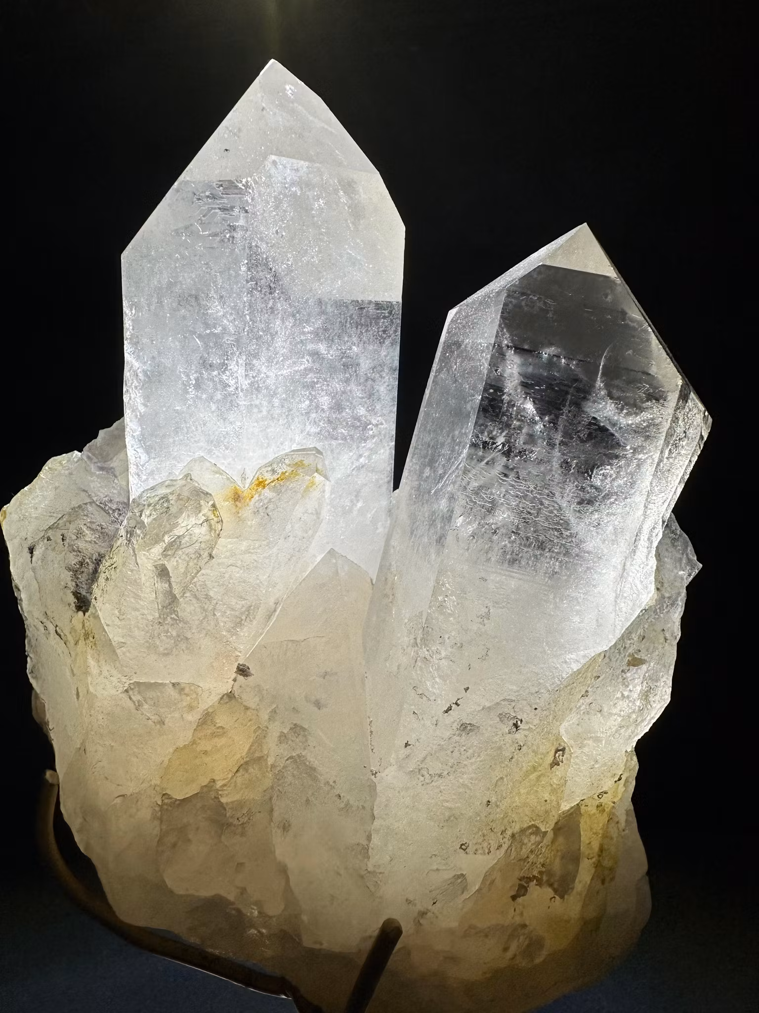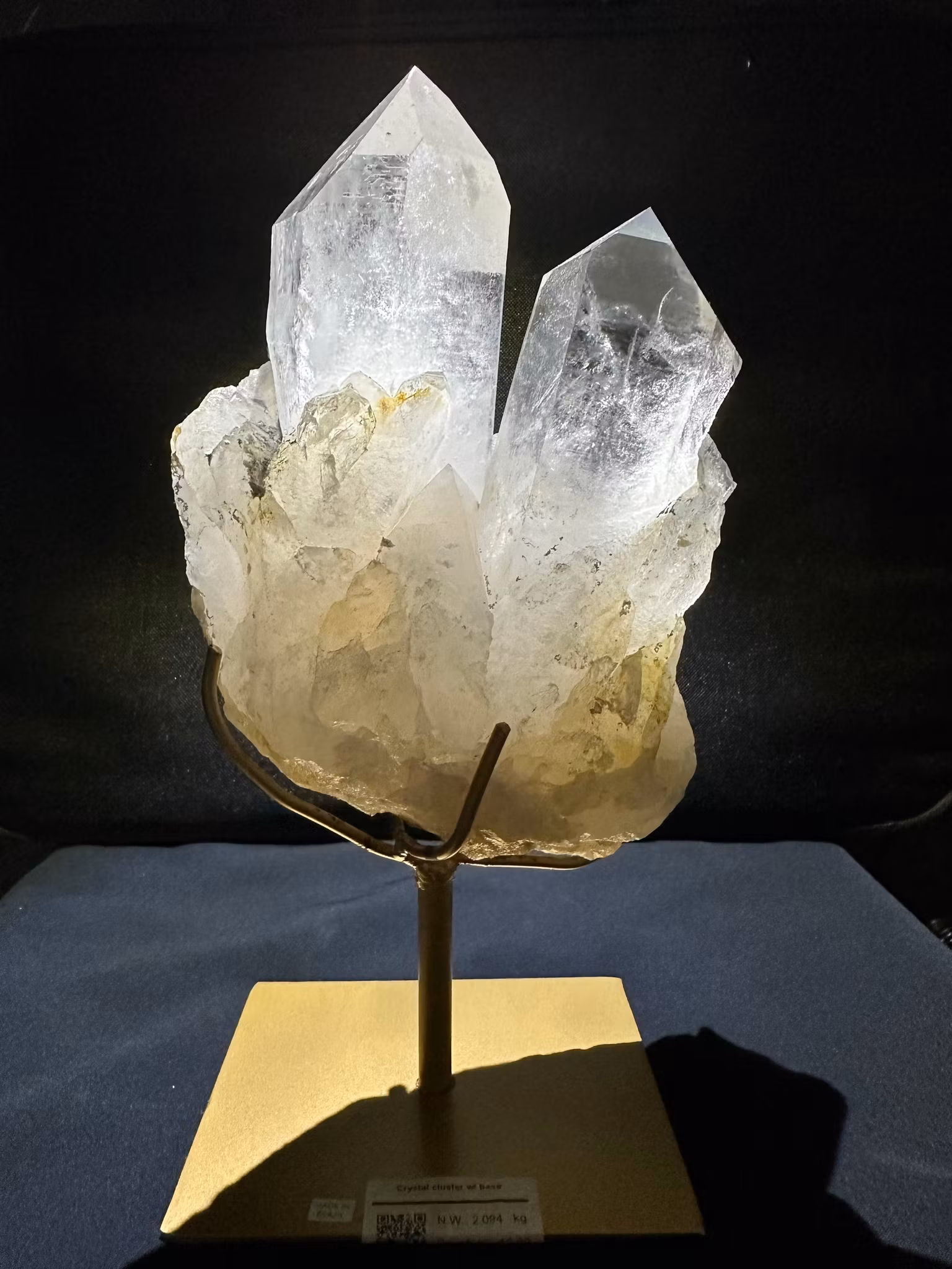 Namn: Bergkristall på ställning Modell: kluster/spets/spetsarKvalitet: Mycket hög kvalitetStorlek med ställning : Höjd ca 26 cm Bredd ca 12 cm Vikt :