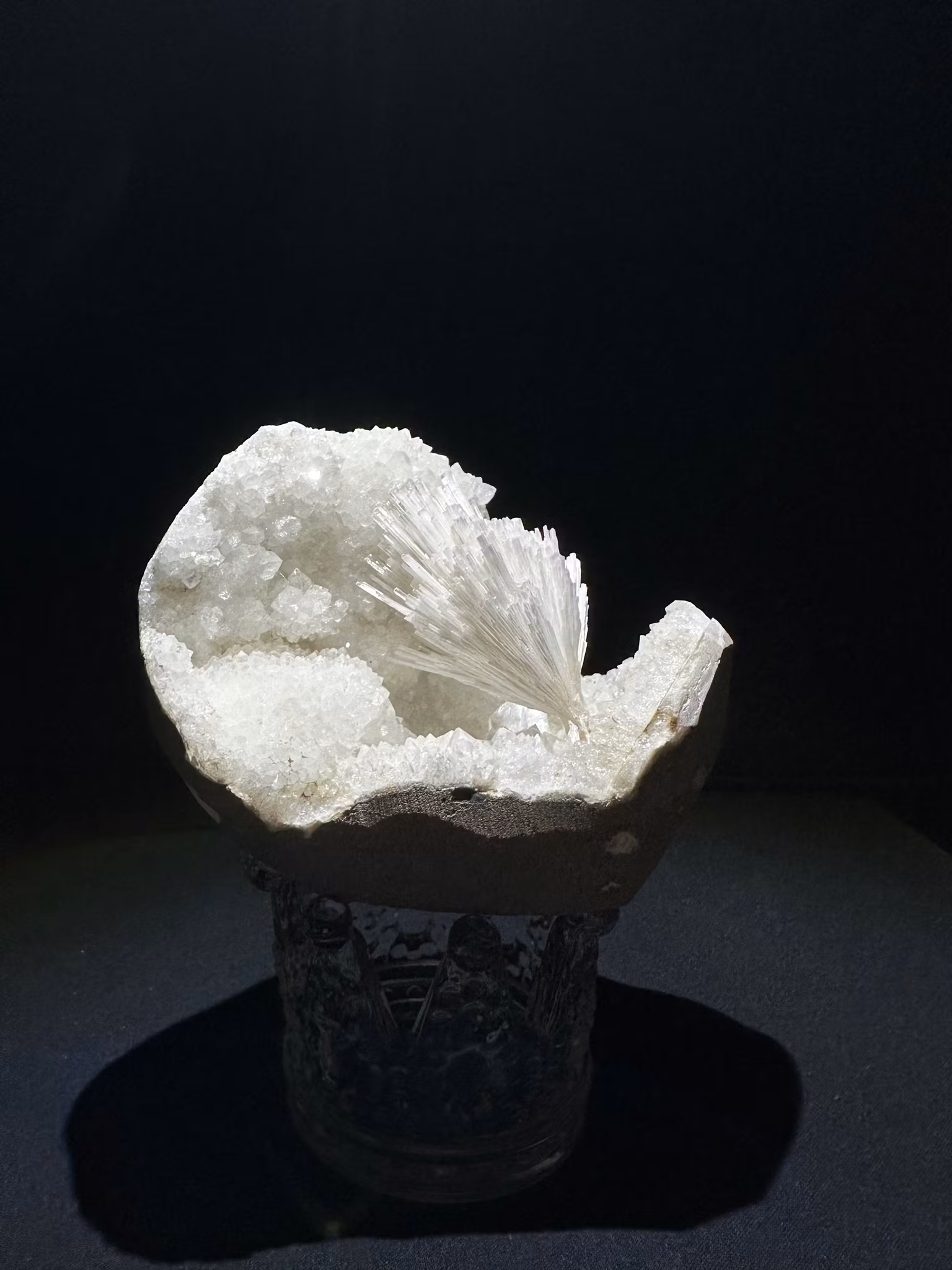 Fantastiskaå nålkluster i Scolecit. Ett extremt ovanligt kluster som en oerhört svårt att hitta på marknaden. Klustret är överöst med nålliknande spetsar i alla